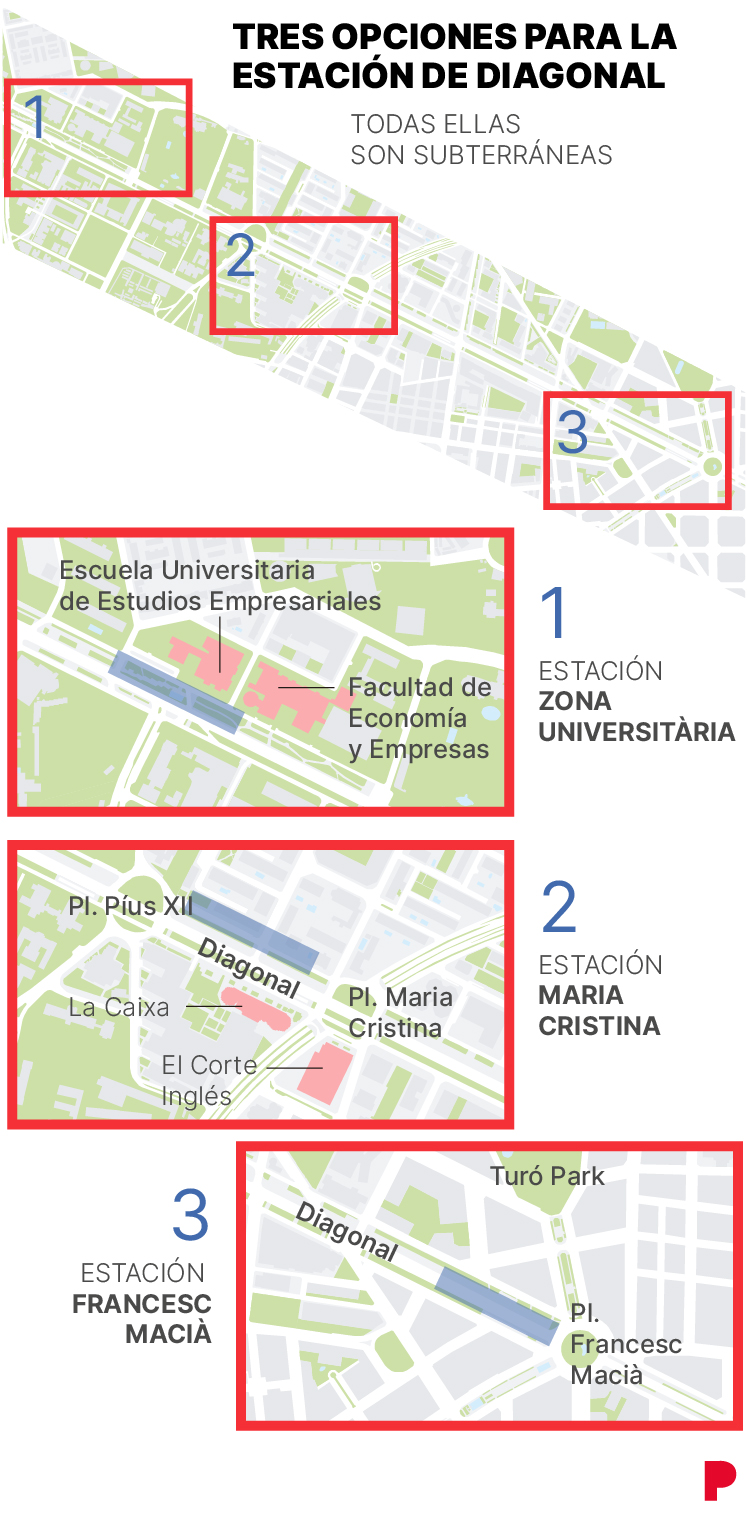 Mais voyons quelles sont les trois options que le gouvernement a sur la table. Allez-y, avant le défilé des candidats, que lorsque cela deviendra une réalité, si cela finit par être le cas, le tramway devrait déjà être connecté sur toute l’avenue Diagonal et la connexion FGC L8, déjà en construction, devrait être terminée, avec un s’arrêter, précisément, au pied du Avenue Pau Casals et parc Turó.